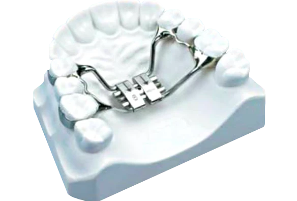 - Appareil collé sur les dents (métallique ou esthétique) ou appareil au palais